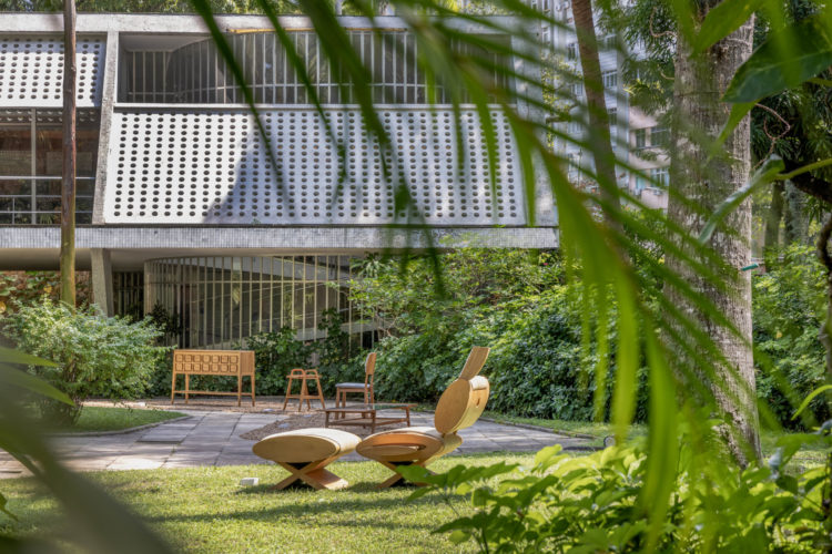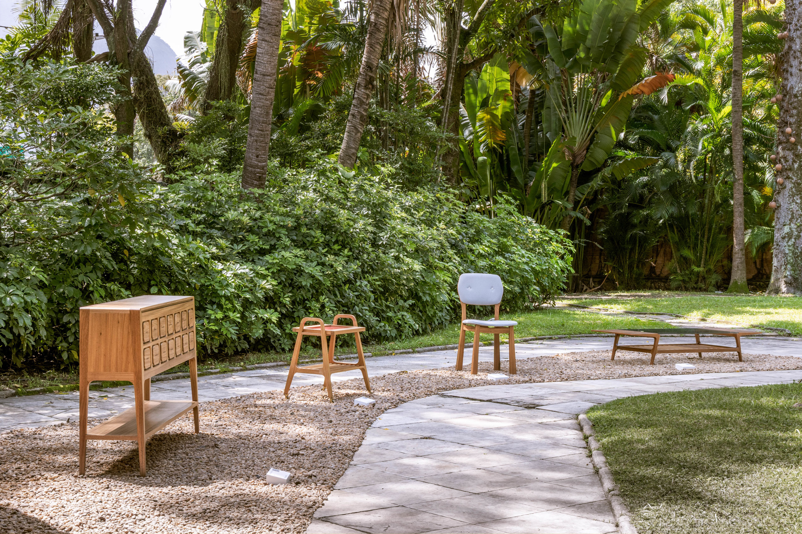 Mais de 40 peças de mobiliário encontraram o cenário perfeito na Casa das Garças, na Gávea, projeto de Oscar Niemeyer envolto em jardins de Burle Marx. As curvas desenhadas pelo mestre da arquitetura em 1952 abraçaram o traçado orgânico das peças da designer.