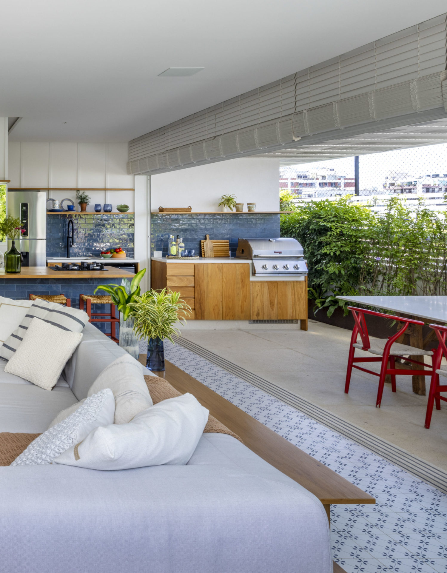O projeto de reforma e decoração ficou a cargo das arquitetas Adriana Valle e Patricia Carvalho, do escritório Migs Arquitetura. Já Anna Luiza Rothier assumiu o projeto de paisagismo, de estilo tropical, que ocupa 100m² na área externa do piso superior.
